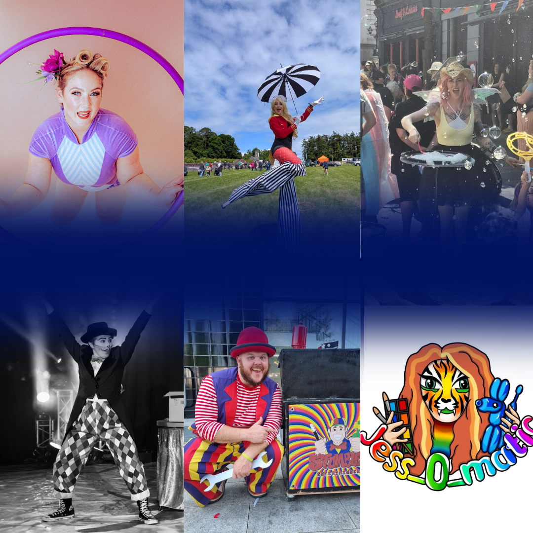 Hoola Hooping, Face Painting, Clowning, Bubbles, Stiltwalking and more!